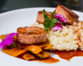 Conchas negras ahumadas que se mezclan de manera muy delicada con vegetales...