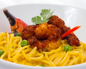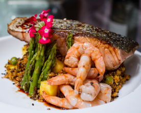 Deliciosa combinación de mariscos crocantes servidos sobre el rey de nuestro mar...