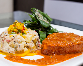 Delicado paté garbanzos con arroz hechos una fina masa crocante que se corona...